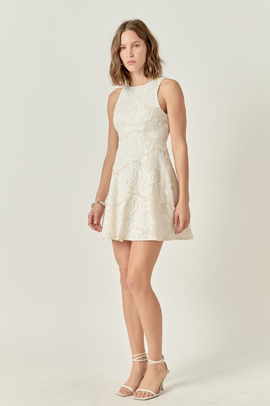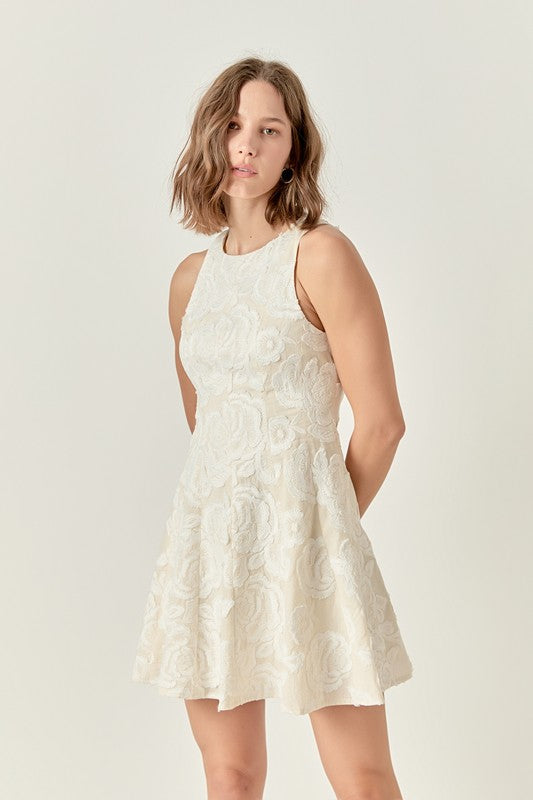 Zip into style with our Floral Embroidered Mini dress. Featuring a delicate white floral embroidery and a convenient back zip, this mini dress is the perfect mix of chic and practical. Fun and feminine, it's a must-have addition to any wardrobe. Don't miss out, grab yours today!