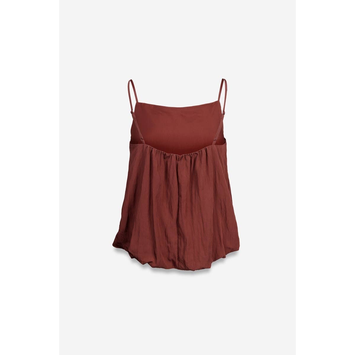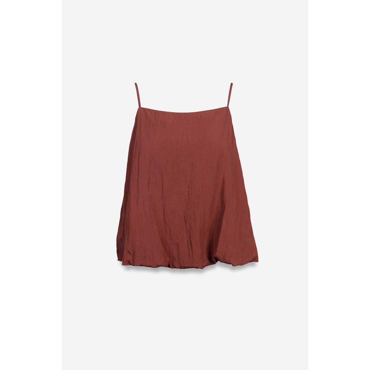 Women's Billowy Cami Top with Bubble Hem Adjustable straps for a custom fit Voluminous, airy silhouette with a bubble hem finish Easy to pair with anything from tailored pants to denim shorts Fabric: Woven 75% Rayon 25% Nylon Hand Wash Cold