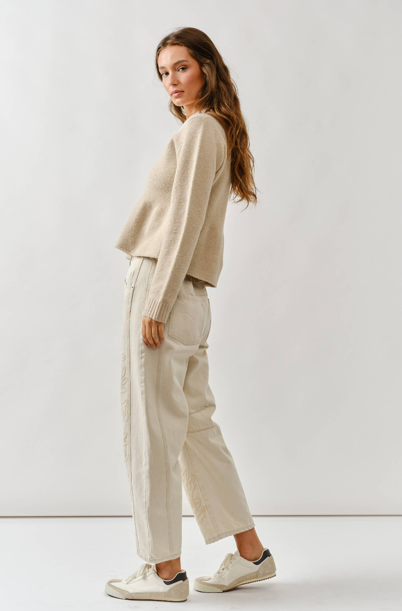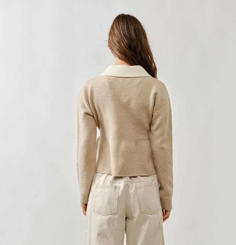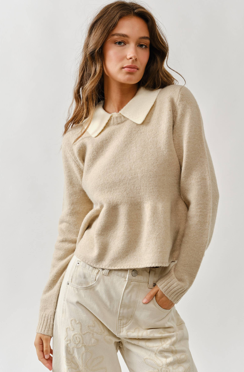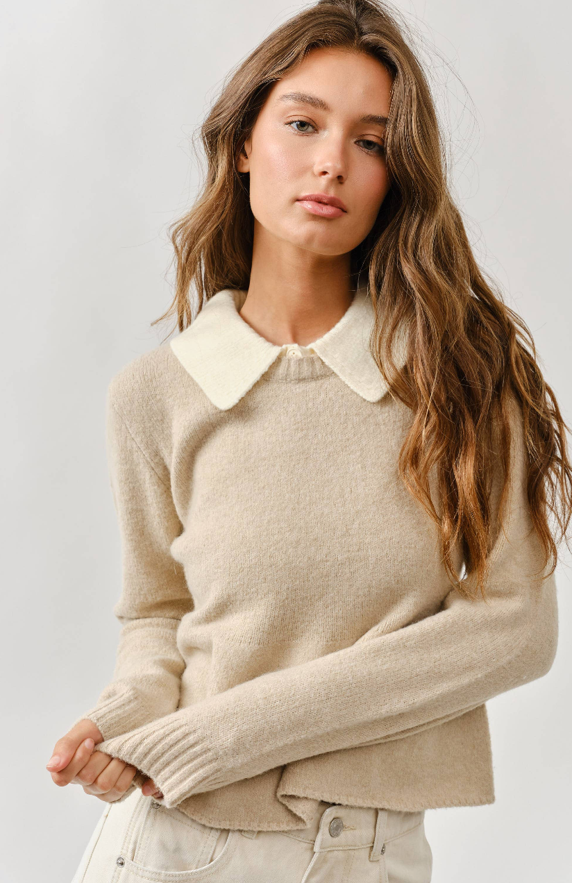 This knit sweater features a feminine cozy texture. This peplum sweater features a soft silhouette and a contrast collar that adds a touch of vintage charm to your everyday look.