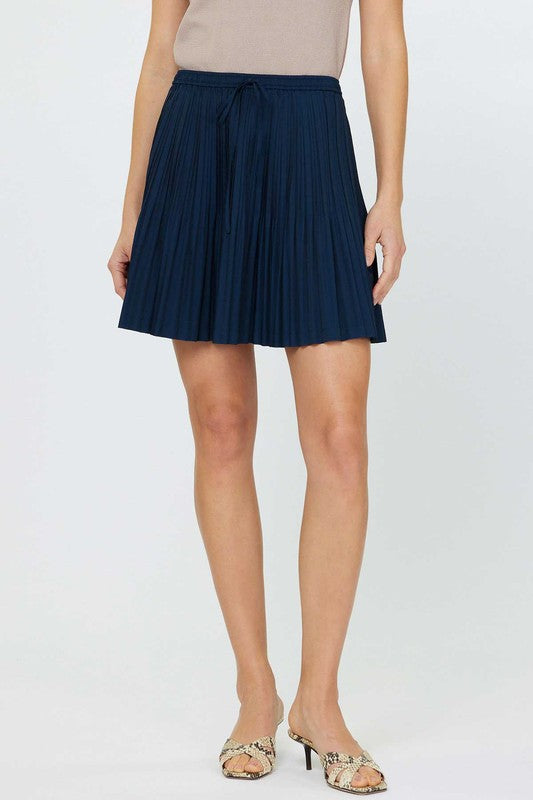 This navy pleated mini skirt features a comfortable elastic waistline for easy wear and a flattering fit. Made from a durable blend of 55% nylon and 45% polyester, it offers a lightweight feel with a playful bounce in every step. Perfect for adding a fun, flirty touch to your outfit!
