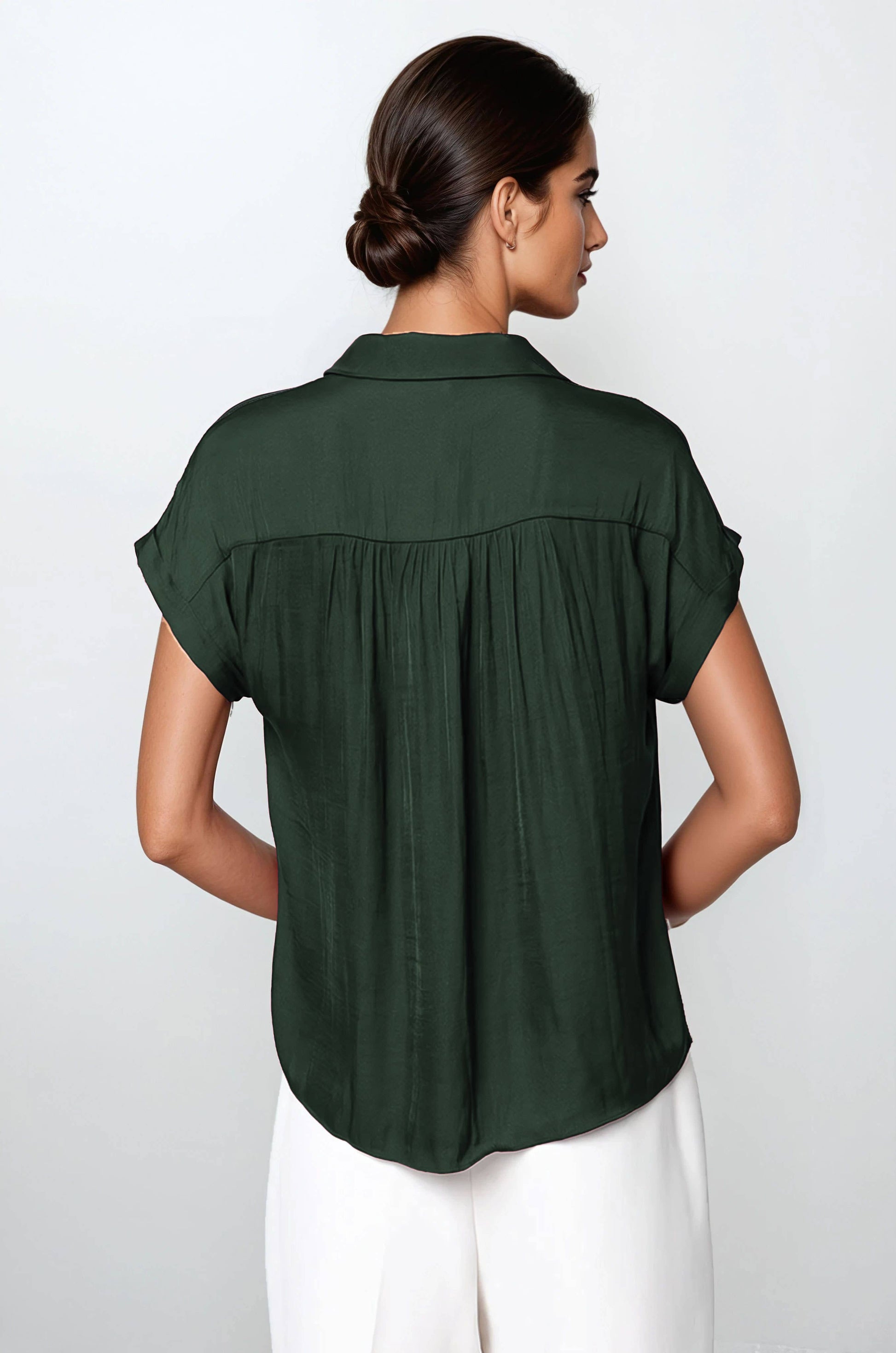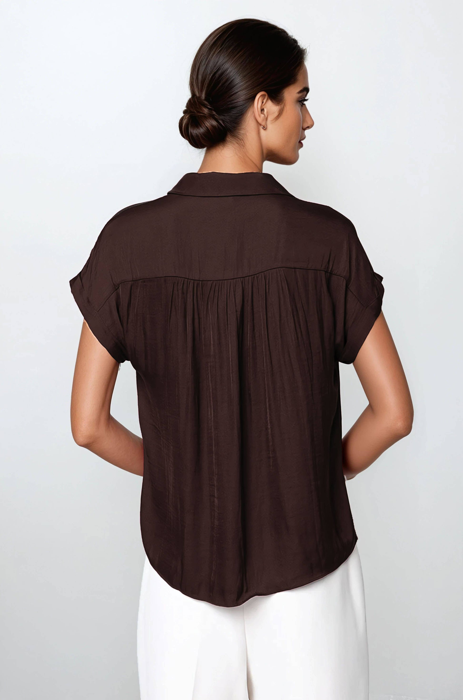 This short sleeve blouse is a staple for any wardrobe, offering a clean and classic look that's versatile for both professional and casual settings. The tailored fit and lightweight fabric provide a comfortable wear experience, while the simple elegance of the design makes it easy to pair with various bottoms for a polished ensemble.
