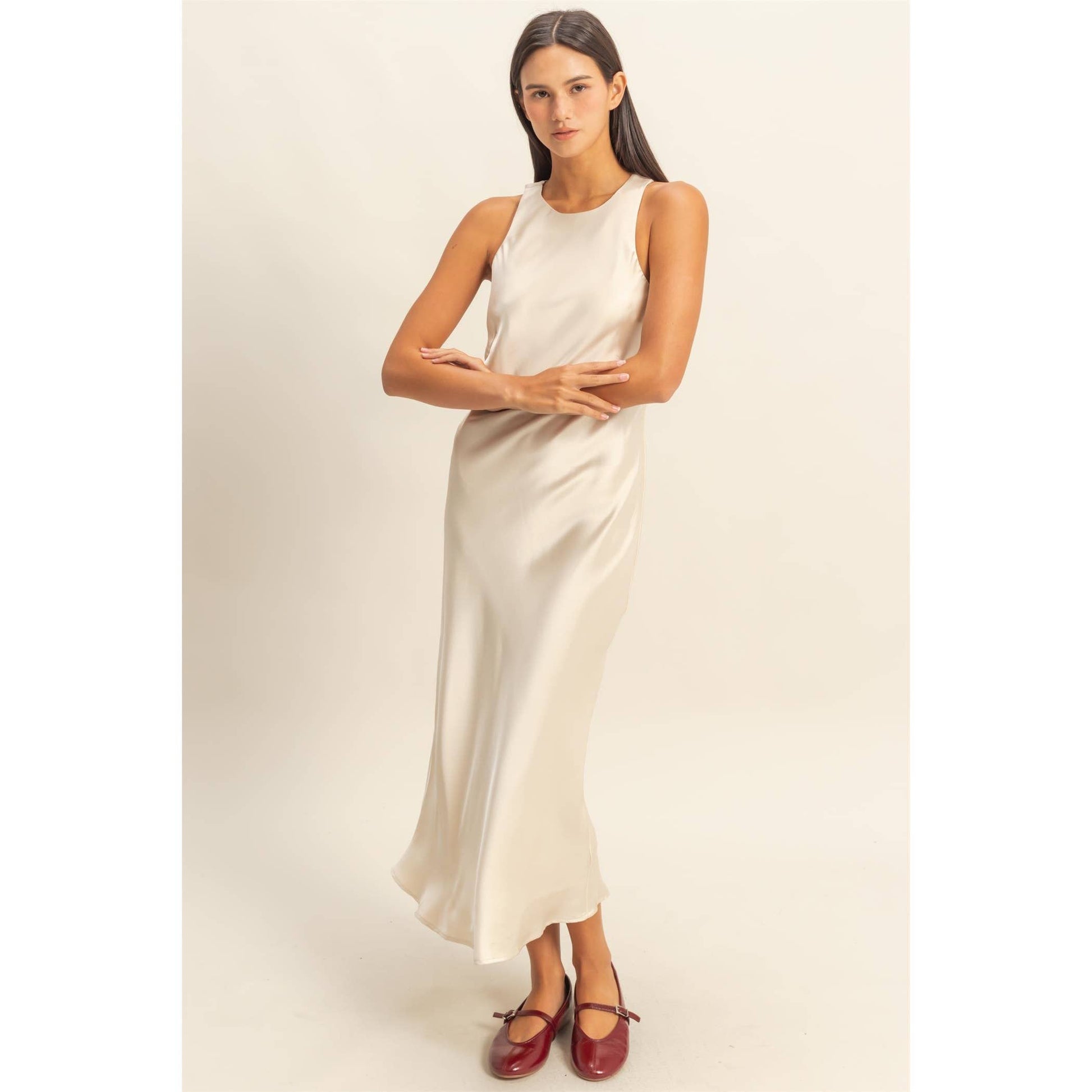 This Dress Is Ideal For A Chic Look That's Easy To Achieve. It Is Made With A Round Neck, Cutaway Shoulders And A Fitted Bodice That Continues Down To A Relaxed Midi Hem. A Keyhole Cutout At The Back With A Button Closure Completes The Look. 100% Polyester Model Is 5' 7" Tall, 32" Chest, 23" Waist, 34" Hips And Wearing A Size Small Imported. Designed in the USA